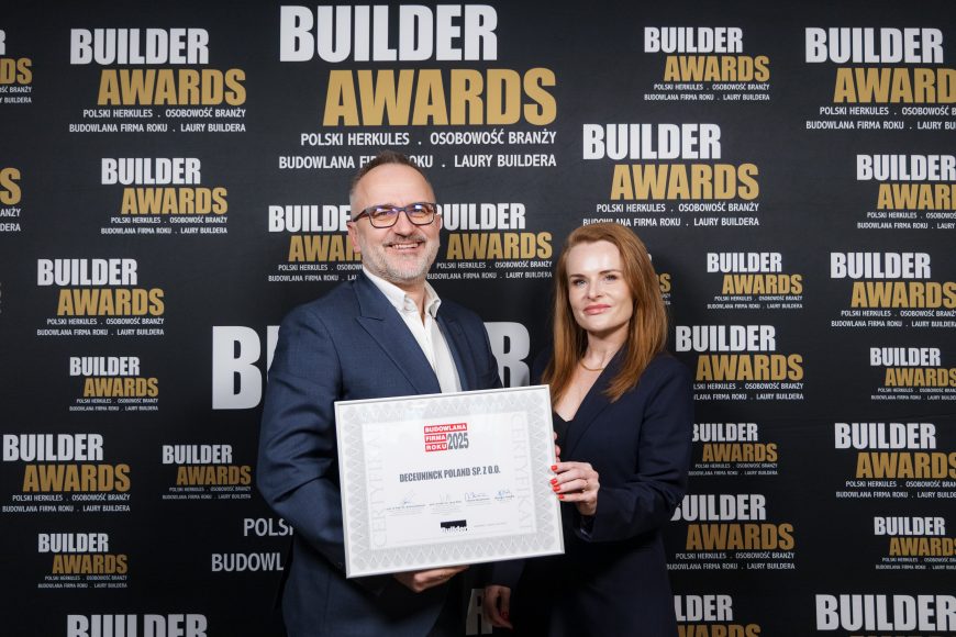 Deceuninck zdobył prestiżowe wyróżnienie na gali Builder Awards 2026, gdzie firma otrzymała tytuł Budowlanej Firmy Roku 2025 w kategorii producent/dostawca materiałów budowlanych. Nagroda została przyznana przez Redakcję i Radę Naukową miesięcznika „Builder”, doceniając dynamiczny rozwój firmy oraz jej znaczący wkład w rozwój branży budowlanej.